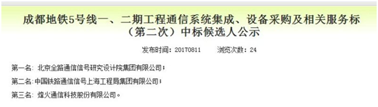 近日,成都地鐵5號線一、二期工程通信系統(tǒng)集成、設(shè)備采購招標結(jié)果揭曉,中國通號集團北京全路通信信號研究設(shè)計院有限公司攜手廣東創(chuàng)電科技有限公司中標,創(chuàng)電科技將承擔交流電源屏和UPS電源系統(tǒng)項目。